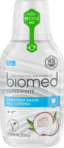 Ополаскиватель для полости рта BIOMED Superwhite с кокосовым вкусом и...