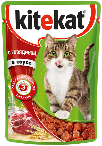 Корм консервированный для взрослых кошек KITEKAT Сочная говядина с гов...